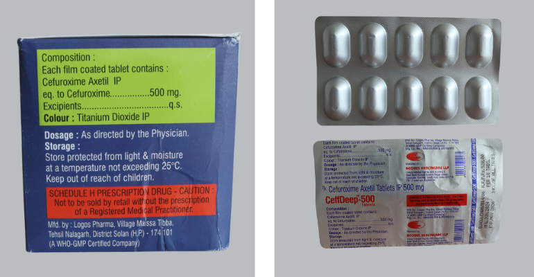 Each film coated tablet contains: Cefuroxime Axetil IP equivalent to Cefuroxime 500mg