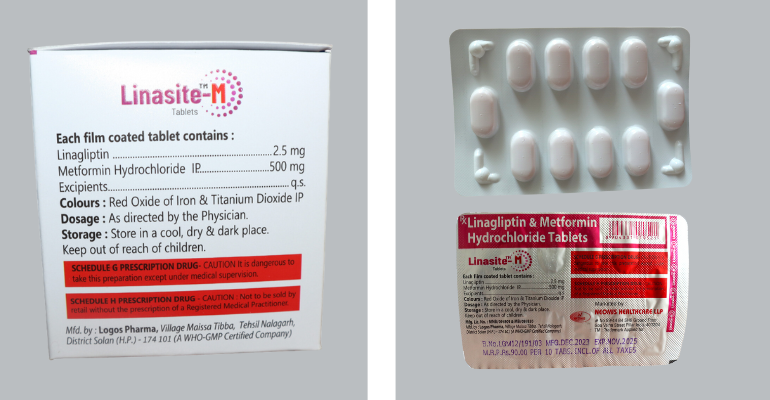 Each film coated tablet contains Linagliptin 2.5mg, Metformin Hydrochloride IP 500mg